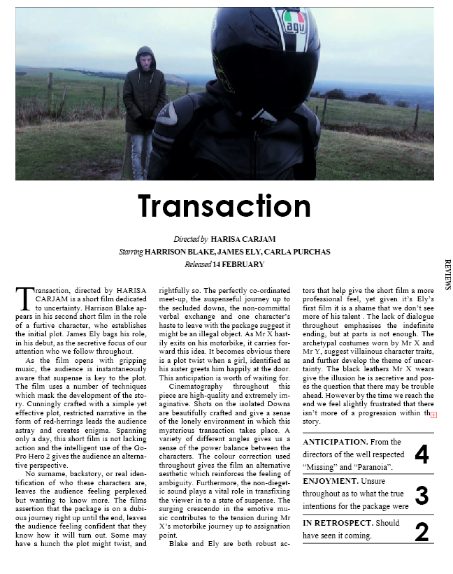 The magazine reviews is what introduces an in-depth written piece about our work. The template is the same for each one. The format is very clear and bold, making it eye catching. The magazine uses a tripartite ranking system. The categories (Anticipation, Enjoyment and In Retrospect) are marked out of 5 and accompanied by explanatory text.